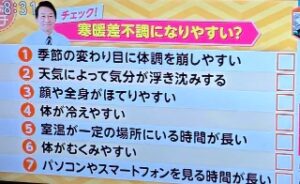 こんにちは😊 旦那さま❤️ 3個以上当てはまったら、 注意ですよ⚠️ あと、冷えないように、 マフラーで調節するといいですよ☺️ 首、手首、足首を 冷やさないように☺️ 元気で過ごしましょうね💪🏻✨ 今日も ローズマリーで お待ちしております❤️