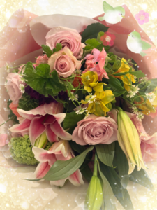 こんばんはお忙しい中にお時間を作って下さり、ご指名様方本当にありがとうございました。皆様の笑顔に支えて頂き、嬉しくて幸せな時間を過ごすことができました。 お優しいご指名様からお菓子と「お気持ち」を頂きました。「ホワイトデーが近いから!」とのことです。感激です!!お心遣いに感謝致します。楽しいお時間は、いつもですが本当にあっという間に過ぎました。お仕事では、「転機」がありそうですね。また、ご指名様の近況を伺うのが楽しみとなりました。次回を待ち遠しく、心待ちにしております。 また素晴らしい「花束」と出迎えて下さりましたご指名様がいらっしゃいます。スノーボール、スイートピー、薔薇は2種類、カーネーション、百合は八重と一重、ラナンキュラス、ローズゼラニウム等々〜。今回は大きくてダイナミックな百合を中心としたアレンジです。元気の出る花束を本当にありがとうございました。 スイーツを頂くお時間もありました。 桜のムースがとても美味しかったです。ご馳走様でした。ご指名様は、長い長いお時間、ずっと紳士的に接して下さりました。ありがとうございました。 小嶋美玲